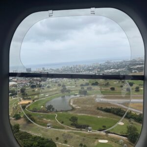 Once we reached our cruising altitude of just 500 feet, the experience was shockingly peaceful. It wasn’t the sterile environment of a commercial airliner. It felt intimate and connected to the world below. Because the blimp moves at a leisurely pace, the ride is incredibly smooth. The sensation was less like being on a plane and more like floating on a boat in the sky. The “ship of the sky” nickname suddenly made perfect sense to us. The most surprising part? We could open the windows!